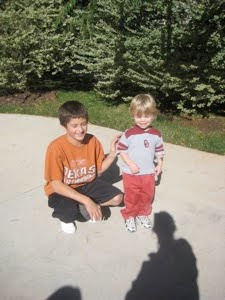 After his party we headed hopped in the car for the 5 hour drive to Oklahoma. Both boys did so well. We are so lucky to have such good travelers, as we’ve been on the road 4 weekends in a row!!! Even I’m tired of being in the car. Wade dropped the boys and I off at our Bryson and Ilena’s house so he could go run before dinner. Their son, Brody, is 1 year older than Sterling and their daughter, Meg, is 6 weeks older than Hudson. The kids had a blast playing before dinner and trick or treating!